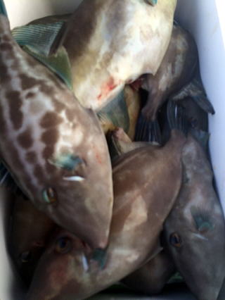 ハゲでお土産作り、何とかハマチの顔見れました。